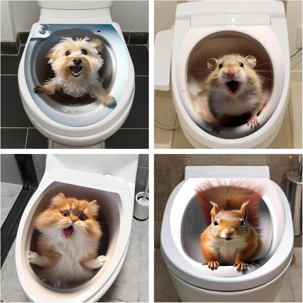 Lustiger Toilettendeckelaufkleber mit Haustieren, dekoratives Badezimmer-Aufkleber-Set, mehrere Designs