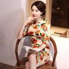 Sommer Kurzarm Cheongsam Chinesischer Stil Kleid Mittellang Übergröße Kleid