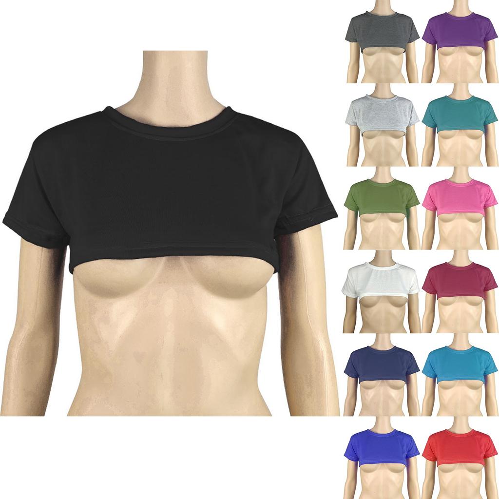 Damen Two Yuan Einfarbiges Brust-Kurz-T-Shirt Süßes Tag Sexy Crop Kurzarm-T-Shirt