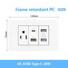 Italien Chile Mexiko USB Smart Typ-c 20W Schnelllade-Wandsteckdose Stecker, Brasilien Elektrischer Lichtschalter Universal-USB-C-Steckdose