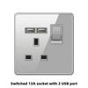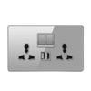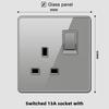 Deluxe Grey Tempered Glass Panel UK 13A Plug Electrical Socket, Double 5 Pin Socket and Switch, EU Universal USB C Wall Socket