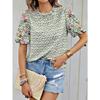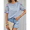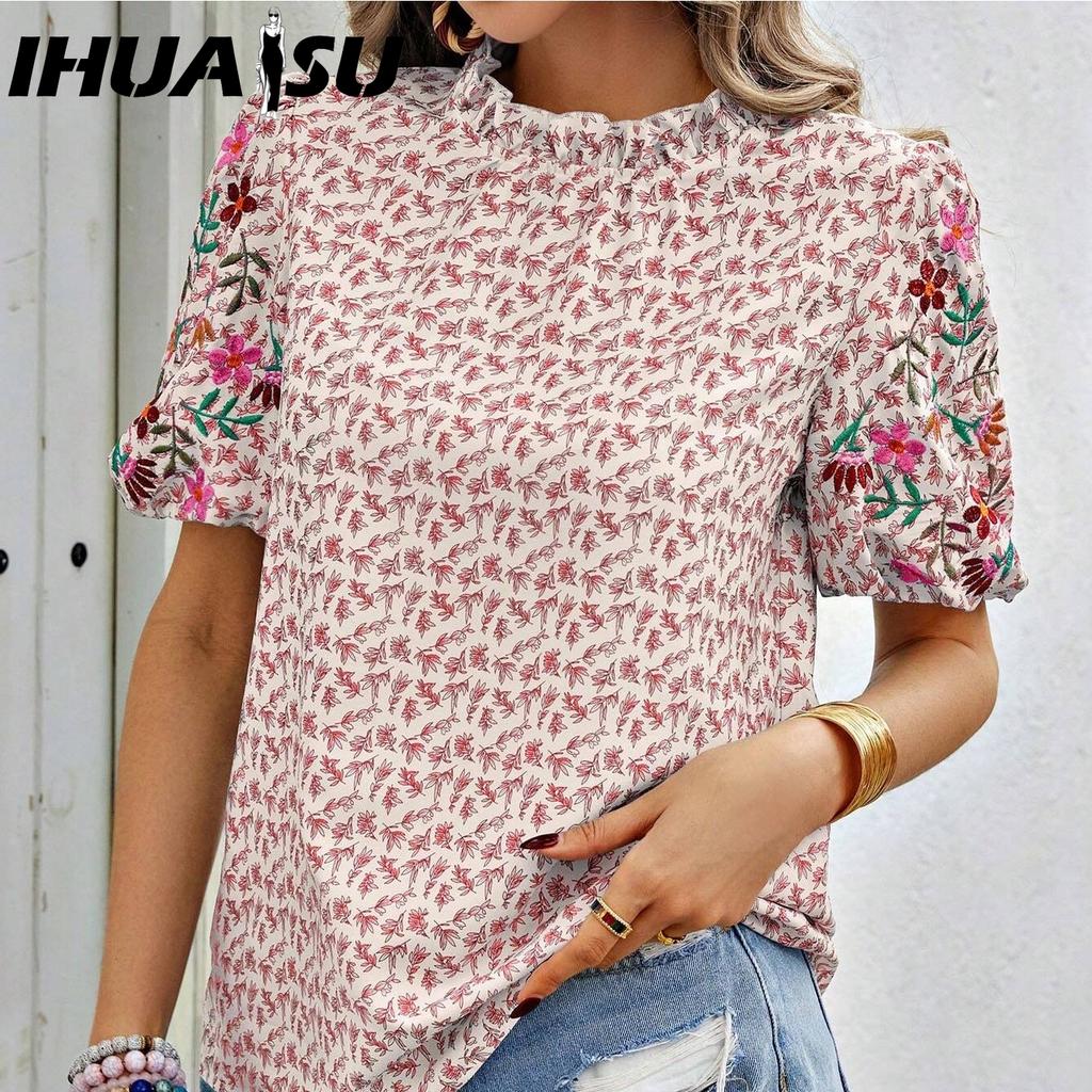 IHUASU Damen Sommer Bestickt Bedruckt Schnalle Welle Hoher Kragen Kurz Farbpassendes Top