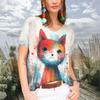 Sommer Damenmode V-Ausschnitt T-Shirt Lässig Cartoon Katze Oberteile Tees Weiblich Bunt Kurzarm Kleidung Damen Vintage Streetwear