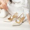 Damen Pumps mit spitzer Zehenpartie, Leder und Nietennähten, High Heels, sexy Bankettmode, neue Sandalen in Übergröße