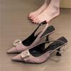 Französische Sandalen mit dünnem Absatz und Taschenkopf, Sommertemperament für Damen, fortgeschrittenes, nicht müde Füße, spitze High Heels aus Metall