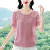 Sommer-Rundhalsshirt für Damen, kurzärmeliges Shirt aus Eisseide, lockeres Mama-T-Shirt für Damen, kurzärmeliges Shirt
