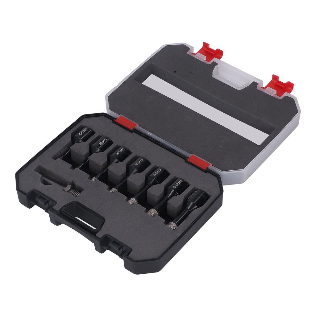 7 Stück Gelötete Diamant-Lochsäge 6-14mm M14 mit Stange für Keramik Marmor Granit Schwarz
