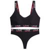 TERMEZY Damen Push-Up-BH-Set, sexy, Buchstaben-Sport-Weste, BH mit niedriger Taille, Tanga-Set, bügelloses Bralette-Dessous-Set aus Baumwolle
