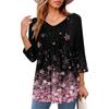 Damen Tops V-Ausschnitt Dreiviertelärmel Gestreift Plissee Casual Sommermode Shirt Tops