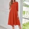 Lässiges, modisches Midikleid mit Rundhalsausschnitt, Dreiviertelärmeln und einfarbiger Optik für Damen
