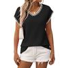 Women's Fashionable Solid Color V Neck Short Sleeved Pullover Knitted Sweater Top