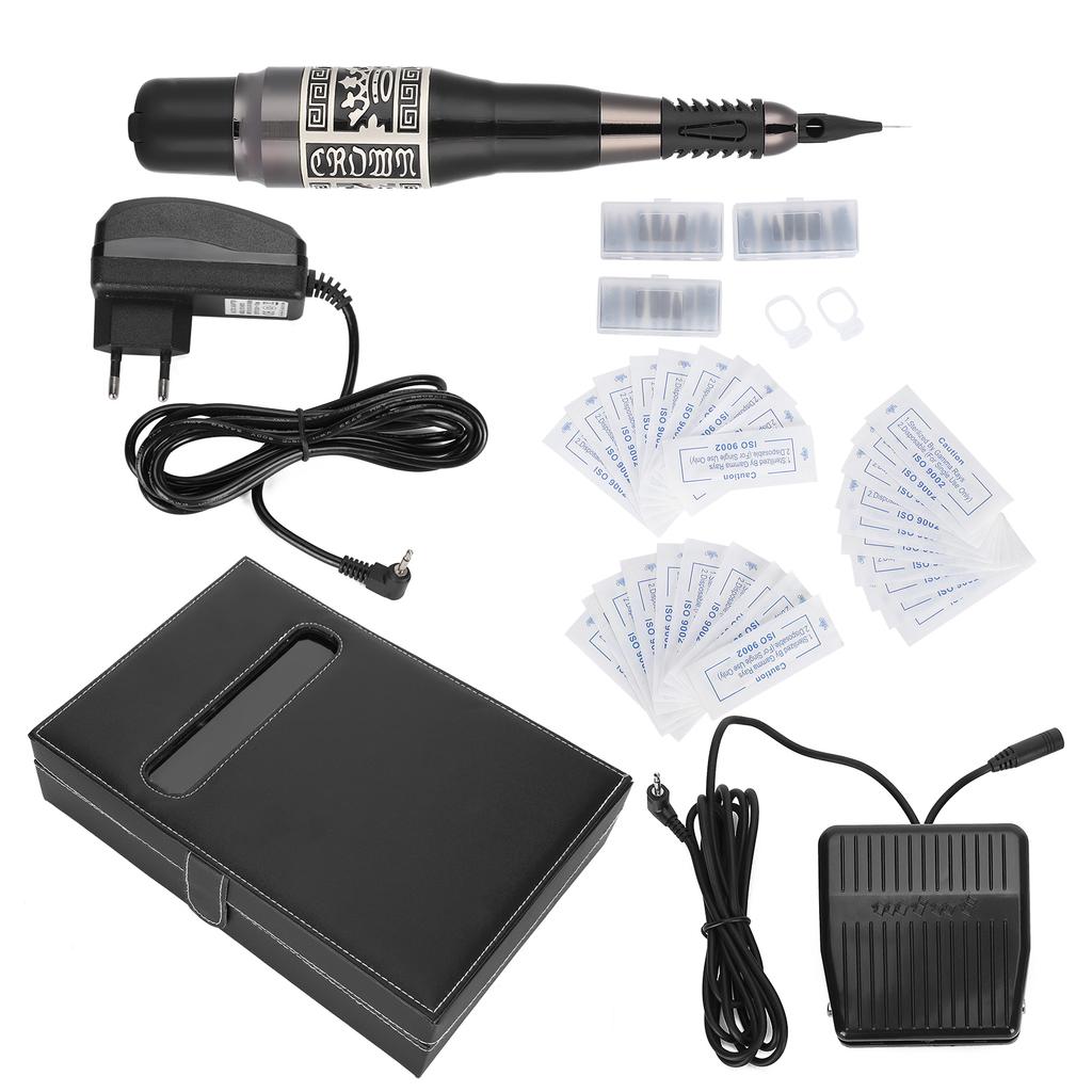 Tätowiermaschinen-Set Professioneller Tätowierstift mit Fußschalter für Augenbrauen-Lippen-Tätowierung Schwarz