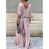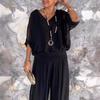Damen Sexy V-Ausschnitt Kurzarm-Oberteil und weite Hose Sets Sommer Chiffon Casual Outfits Casual Loose Street Zweiteiler Sets