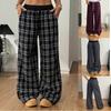 Damenhose, elastischer Bund, mittelhoher Schnitt, weites Bein, lange Hose mit Taschen, karierter Aufdruck, bequeme Freizeithose