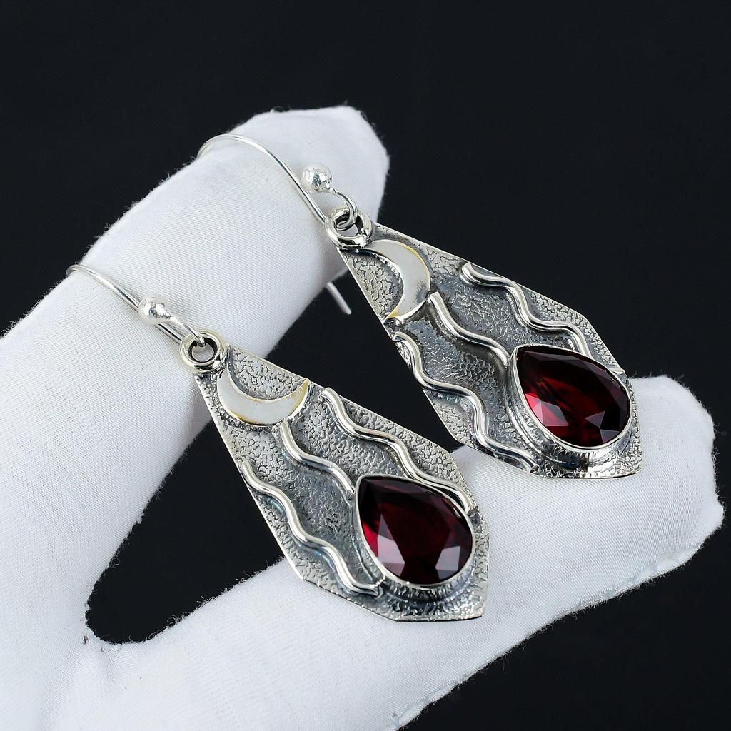 Ohrringe mit natürlichen roten Granat-Edelsteinen, 925 Sterlingsilber-Ohrring, handgefertigter Boho-Silberschmuck Hängeohrringe, Muttertagsgeschenke