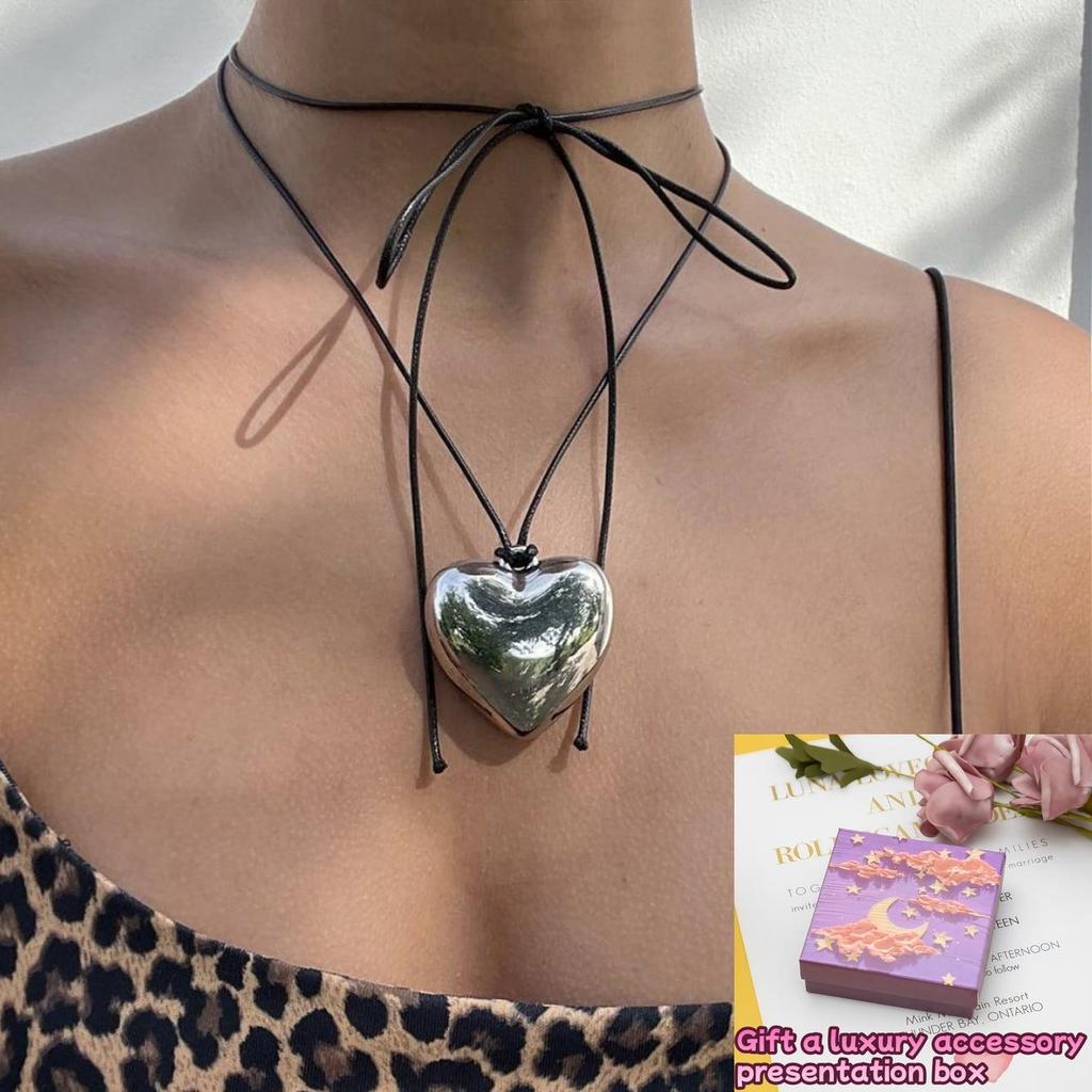 Pull-out adjustable wax thread necklace simple alloy big love pendant necklace