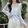 Sommer Sonnenschutz Kleidung Strickjacke für Damen Dünn Locker Holzohren mit Schals Kurz Studenten Gestricktes Eisseidenhemd