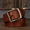 3,8CM Herren Hochwertiger Echter Ledergürtel Lasergravur Messing Dornschließe Gürtel Reines Rindsleder Vintage Riemen Herren Jeans für Mann
