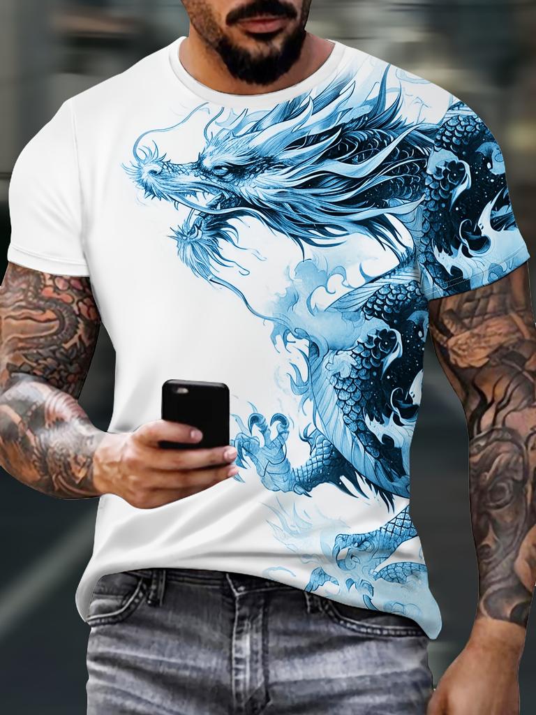 Men's Bold Dragon Graphic Tee - Short Sleeve, Crew Neck, Polyester Blend - Perfect for Summer Outings & Casual Wear