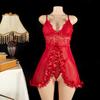 Thin Style G-string Contrast Lace Ruffle Trim Lingerie Set Deep V Slip Dress Thing Women's Sexy Lingerie Lenceria Mujeres wine red