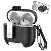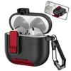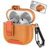 Für AirPods 4 Schutzhülle mit Ständer Leder mit Litschi-Textur TPU + PC Kopfhörerhülle mit Verschluss und Karabiner