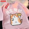 Designiertes Wohlstandsschöpfung Orange Katze Baumwoll Kurzarm T-Shirt Für Männer Und Frauen Sommer Neu Weiß Lässig Locker Studentenoberteil