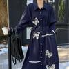 Midi-Hemdkleid im Ethno-Stil mit Retro-Schmetterlingsstickerei und lockerer Schnürung, einreihig, leger, neue Mode für Damen