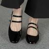 Damen Pumps Frühling Herbst Doppelschnalle Mary Jane Schuhe für Damen Lackleder Quadratischer Kopf Quadratischer Absatz Einfarbig Damenschuhe
