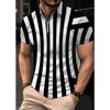 Men's striped printed shirt, short sleeved polo shirt, casual, big, fashionable, summer novelty