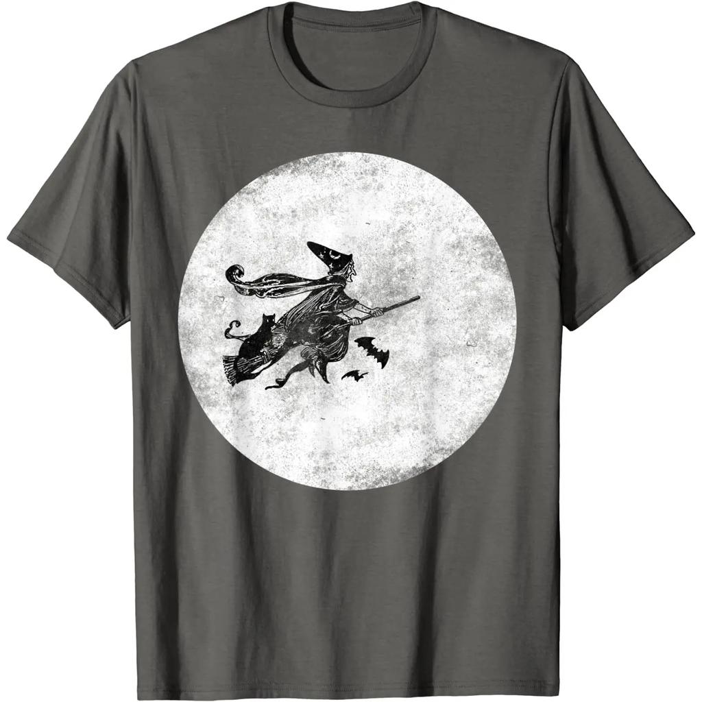 Lustiges T-Shirt Hexe Besen Mond Kostüm Herren Kleidung Streetwear Geschenk T-Shirt Grafik T-Shirts