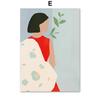 Frau Leopard Poster Strand Tropische Pflanze Blatt Wandkunst Wandbild Leinwand Linien Druck Abstraktes Ölgemälde Bilder Wohnzimmer Dekor