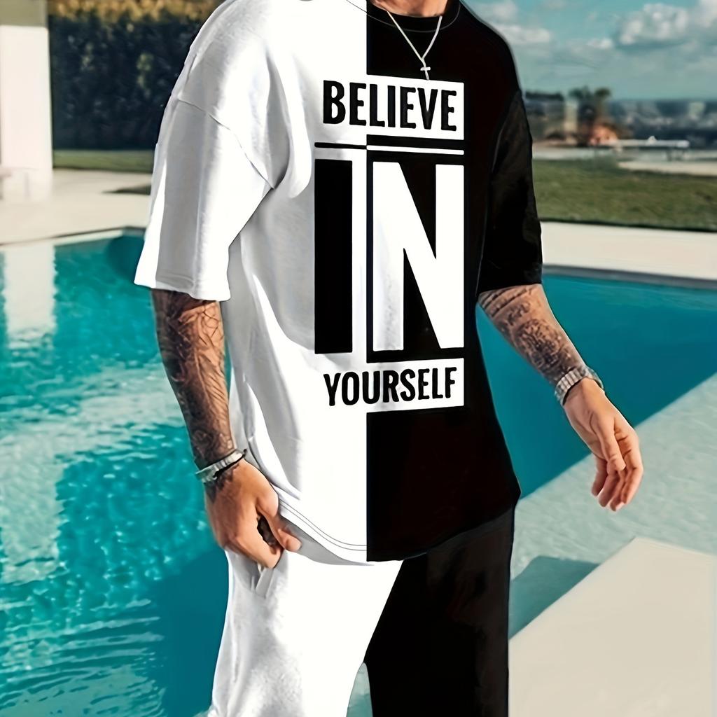 Lässiges T-Shirt mit Rundhalsausschnitt und kurzen Ärmeln & Kordelzug-Shorts - Sommer Herrenbekleidung T-Shirts Set
