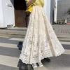 Spitzenrock für Damen im Frühling und Sommer, A-Linie, langer Rock, großer Saum, Gaze, hohler Faltenrock