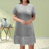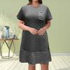 Mode für Damen, lockerer, einfacher Druck, O-Ausschnitt, kurze Ärmel, Blätter-Druck, lockere Streetwear, A-Linien-Kleid