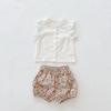 2025 Sommer Baby Mädchen Puffärmel Knopf Top & Blumenmuster Shorts Set