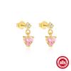 S925 Silver Niche Design Pink Zirconium Five-Petaled Flower Temperament Personality Versatile Fashion Popular Stud Earrings