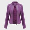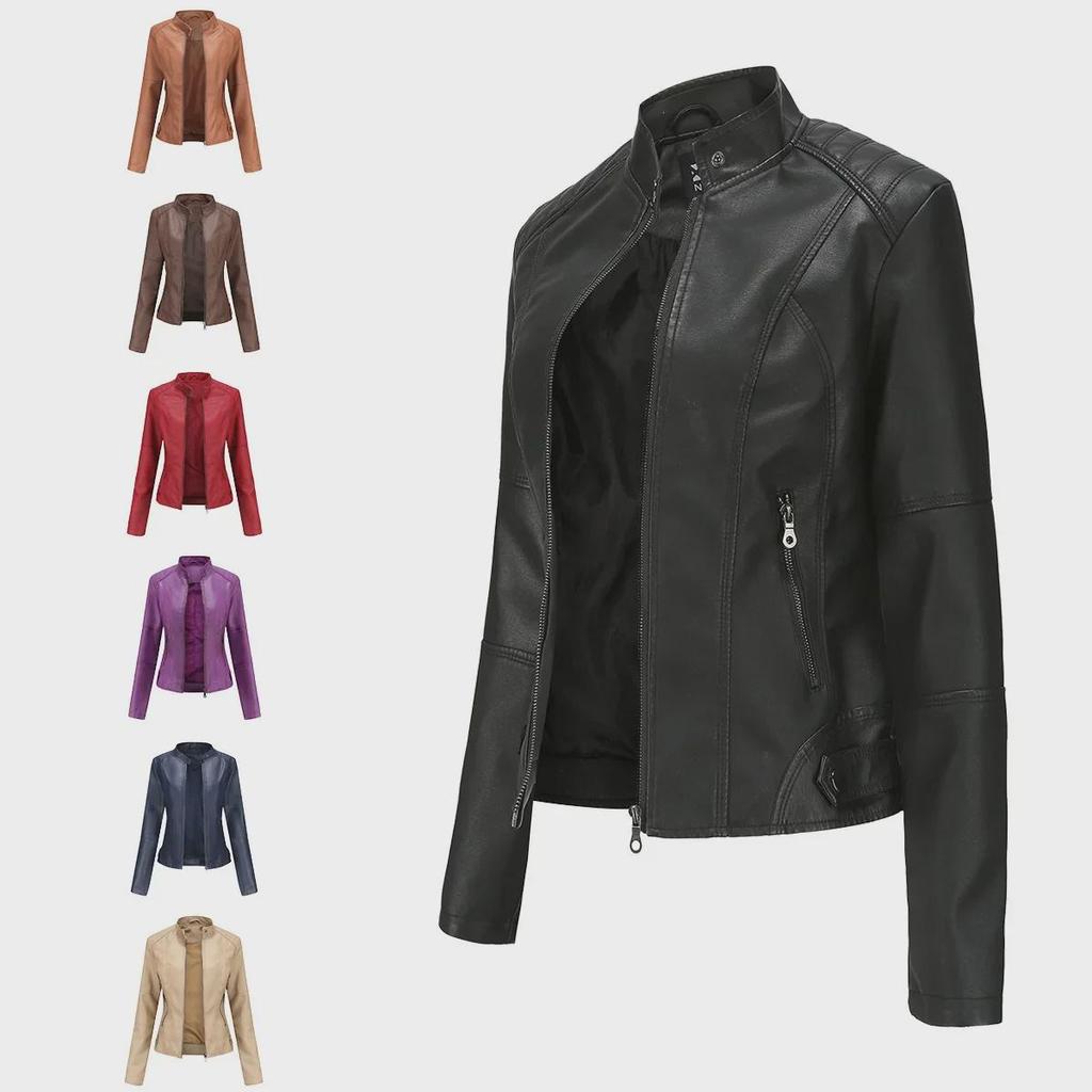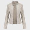 Europäische Damen Lederjacken: Schmale Passform, dünne Frühlings-/Herbstmäntel, Motorrad-Stil, großer Stehkragen.
