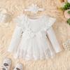 3D Blume Sommer Baby Mädchen Romper Prinzessin Mesh Neugeborene Kleidung Spitze Patchwork Rüschen Body Kleid Stirnband Kinder Kleidung
