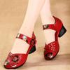 Sommer Designer Nationalstil Freizeit Dicke Absätze Aussparungen Nähen Blumen Print Gemischte Farben Echtes PU-Leder Damen Sandalen