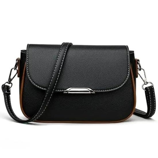AKSUTI Damen-Umhängetasche, schwarzes Kunstleder, verstellbarer Schultergurt