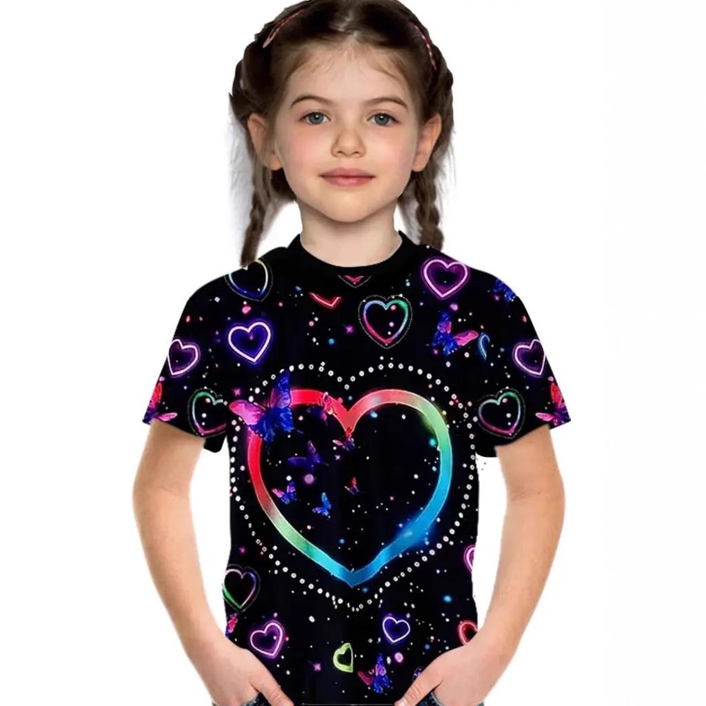 Kids T-shirt 3d Print Summer New Trendy Cute 3D Butterfly Girl Round Neck Short Sleeved T-shirt