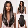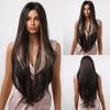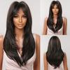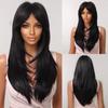 Schwarze lange synthetische Perücken mit Pony, geschichtete, glatte Perücken, hitzebeständig für schwarze Frauen, Afro-Party, Cosplay, natürliche weibliche Perücke