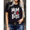 MOM OF BOYS T-Shirt mit Buchstaben-Print für Damen, kurzärmelig, Rundhalsausschnitt, lockeres T-Shirt, Damen, Sommer, Damen, T-Shirt, Tops, Camisetas Mujer