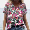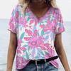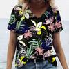 2024 Sommer Damen Floral T-Shirt Mode Tops Tees Weiblich Täglich Lässig V-Ausschnitt Kurzarm Kleidung Damen Stilvolle Streetwear