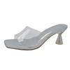 Sommer Frauen Hausschuhe Outdoor Klar PVC Transparent Gelee Sandalen Mode Offene spitze Dünne High Heels Party Damen Schuhe Casual