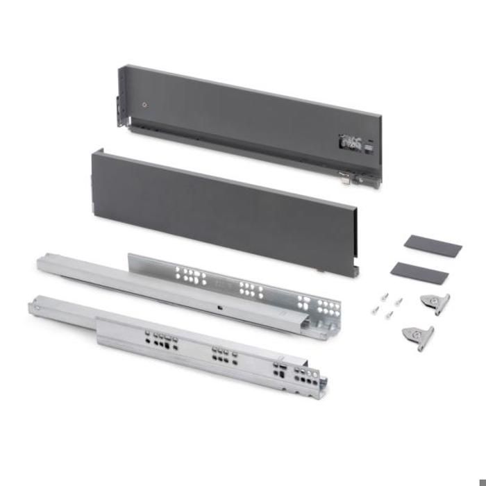 Emuca tiroir extérieur vertex avec réglages 3d hauteur 131mm, 40kg, profondeur 450mm, acier, gris anthracite
