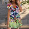 Sommermode Damen V-Ausschnitt Kurzarm Bunte Schmetterlinge Bedrucktes Kleid Sex Kurzer Rock Kleider