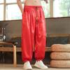 Hose im chinesischen Stil für Herren, Outdoor, Eisseide, Drache, Dunkle Blume, Locker, Weites Bein, Freizeithose, Männlich