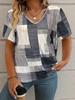 Sommer Kariertes Damen V-Ausschnitt T-Shirt Outdoor Lässig Kurzarm Tops Kariert Bedruckt Trendy Peplum Übergröße Damenbekleidung