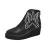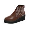 Retro Bestickte Plateau PU Leder Damen Stiefeletten Herbst/Winter Runde Zehen Keilabsatz Botas Reißverschluss hinten Gothic Schuhe